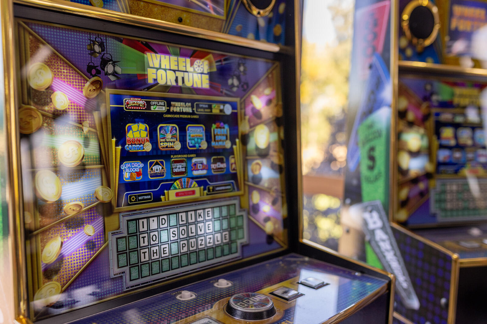 Spin and solve! Try your luck on our Wheel of Fortune-branded slot machines. With every spin, you'll get a chance to solve word puzzles and rack up points, just for the thrill of the game.